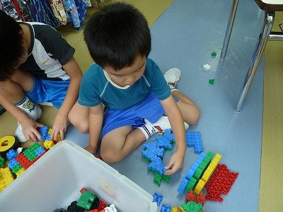 子どもたちも外で遊べず、がっかり・・・と思いきや、お絵かきやブロックで集中して遊ぶ姿が見られましたよ(^▽^)