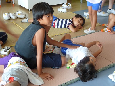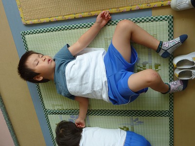 今日も暑い1日でしたね。お外でたくさん遊んで、お弁当を食べた子ども達はすやすやお昼寝。なかなか眠れない子も、ごろんと寝転がって充電満タンです!!