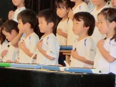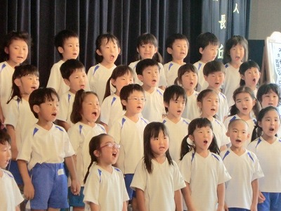 今日は坂田先生のご指導がありました。もうすぐサマーコンサートです。「声を変身♪」と、子ども達と一緒に楽しく歌います。坂田先生のご指導で、子ども達の歌声も明るく、笑顔もいきいきとしています!最年少さんは初めての舞台!ドキドキしますが、みんなでがんばりたいと思います。