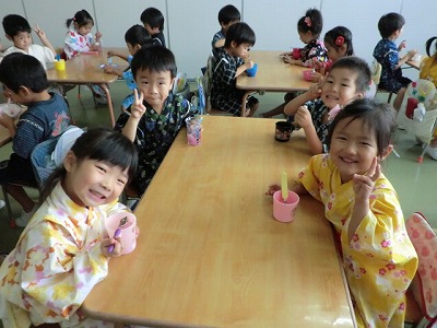 今日は七夕祭りがありました。花火がドーンを踊ったり、カキ氷を食べたり、先生達から七夕のお話を聞いたり……。