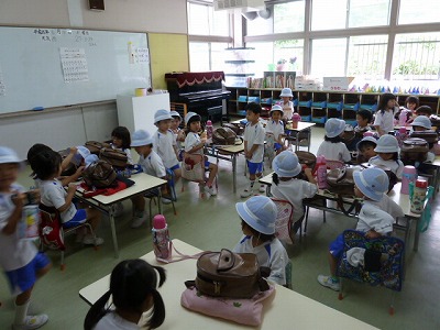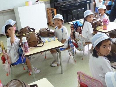 6月に入り、子ども達のお帰りの準備もとっても上手になりました。絵日記バックの上にリュックサック。足をそろえて、「もう終わったよ!」と、ニッコリ笑顔。気持ちがぐんと、お兄さんお姉さんになっています。