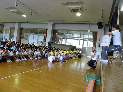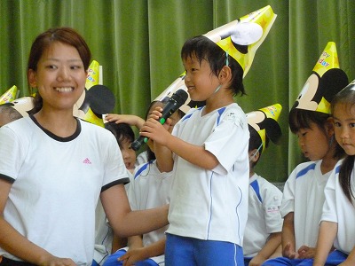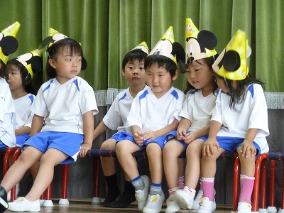 6月生まれのお誕生日会です。緊張した様子でマイクを持ち、ステージの上で発表しました。今日は年中さんの発表!!好きな事を言いました。みんな頑張りましたよ♪みんなから歌のプレゼントと先生達からは大きな絵本のプレゼントです。みんなお誕生日おめでとう!!!