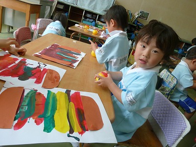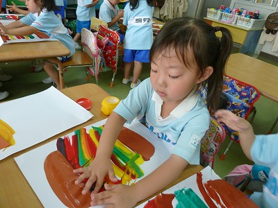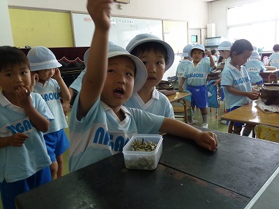 「いちろうさんの牧場で~♪」 教室から、かわいい歌声が聞こえる時間♪大きな口と大きな目で、子どもたちは歌をうたいます。今度はどんな動物が出てくるかな?と、子どもたちもわくわくしながら歌っています!