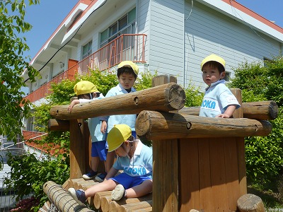 最近では園生活にも慣れ、だんごむしを探したり、遊具で遊んだりと外で元気に走り回っています!!