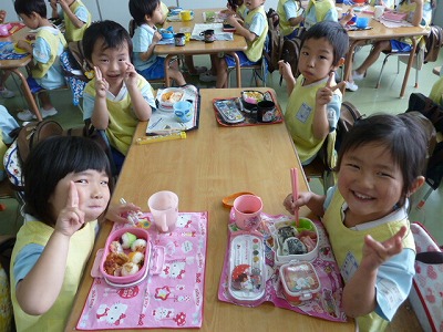 「今日は卵焼きもあった~。」や「見て見てカニさんウィンナー☆」などと、