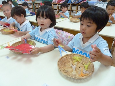 「先生見て見て!」「かにさん出来たよ。」と嬉しそうな声が聞こえてきました。