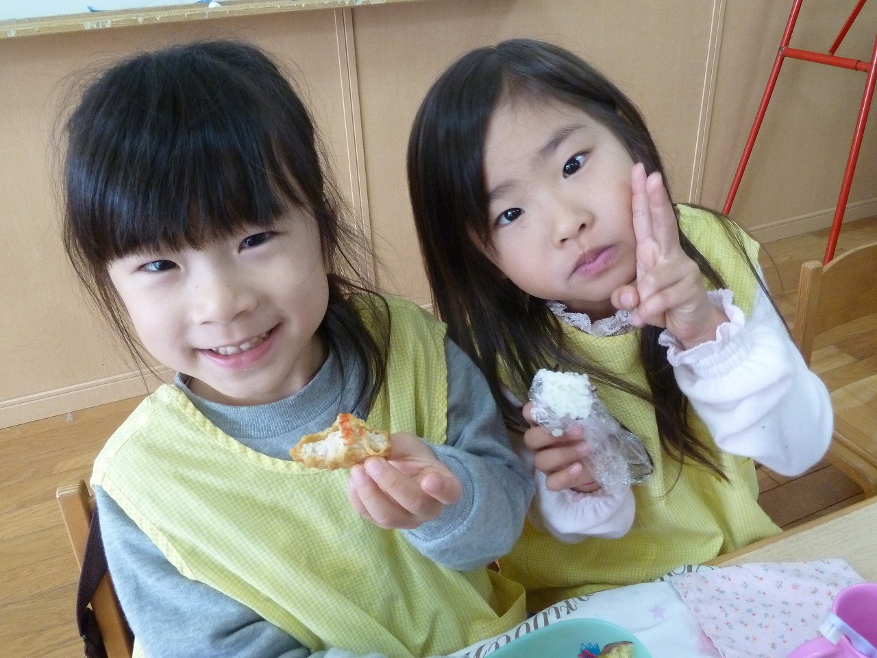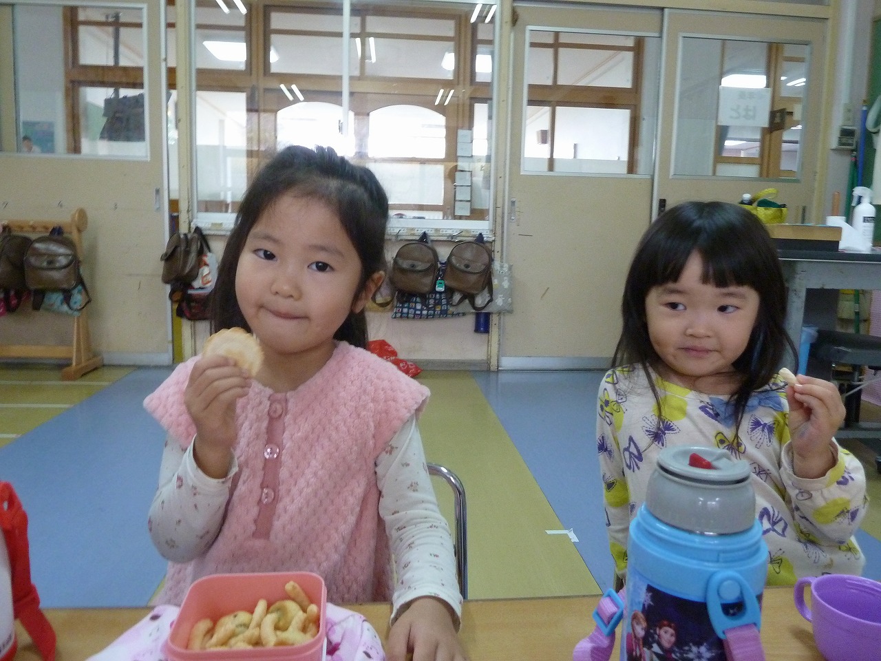 と楽しそうにおしゃべりしながらおやつを食べていました!