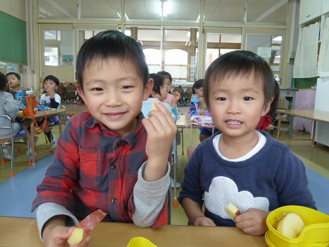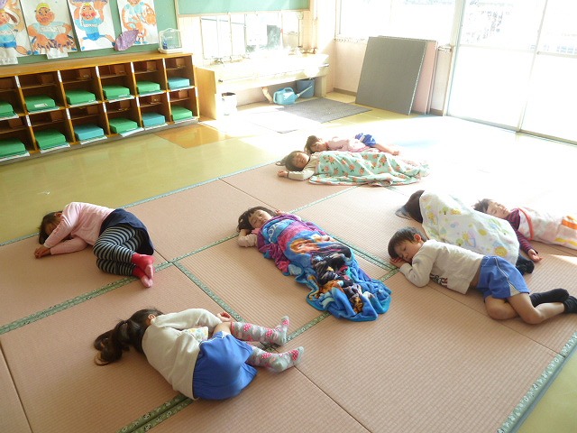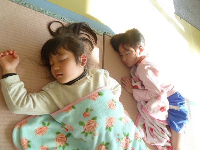 眠たそうに目をこすりながらお昼寝から起きて来た子ども達。