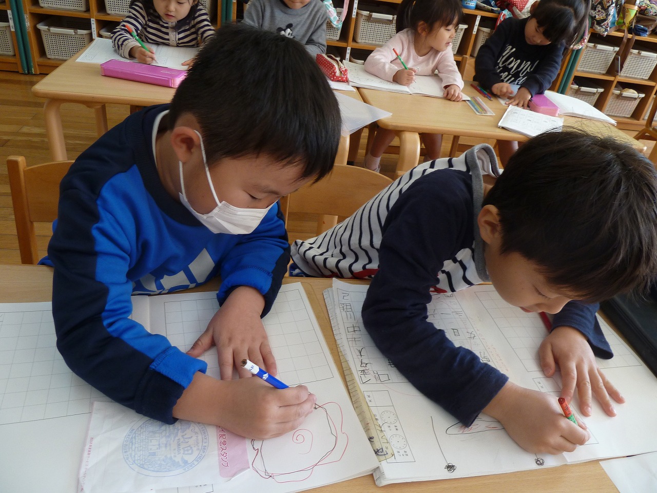 絵日記・文日記に書いている子供達です。