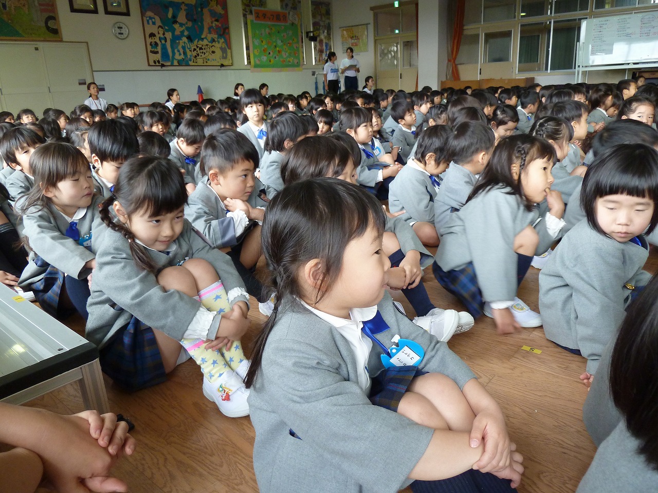 あけましておめでとうございます。今日からいよいよ三学期の始まりです。久しぶりにお友達に会えて子供達もとっても嬉しそうでした。式が始まると姿勢を整えて真剣な表情。園長先生のお話もよく聞いていましたよ。進級に向けて三学期も楽しく頑張りたいと思います。