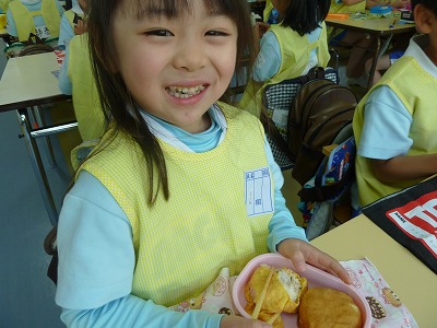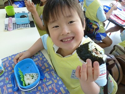 「先生見て~!こんなに大きなおにぎり!」「梅干しがはいってる~!」