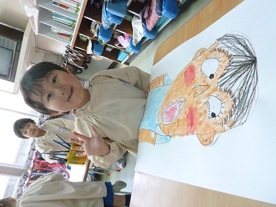 大きなお口でうたっている自分の顔を描きました(^▽^)♪