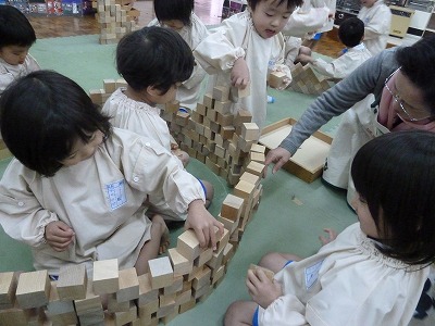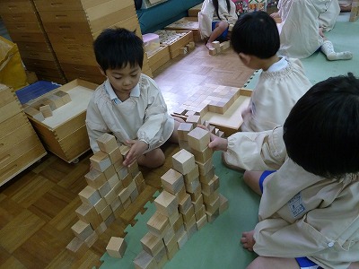 大きな階段を作ったり、みんなで大きなお城を作ったり・・・。