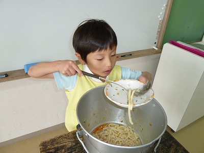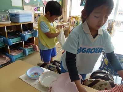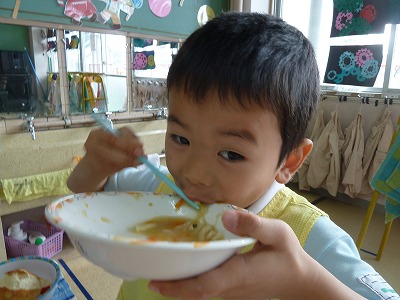水曜日はみんな大好きな給食の日!!給食のお母さんが作ってくださるご飯は心が温まるものばかり(^^)おかわりをする子が続出です!! 給食の中では、食事のマナーに気をつけています。自分のことは自分で、後片付けまで丁寧にすることを心がけていますよ! また、箸の持ち方やお皿をしっかり持つことも大切ですよね!さすが、年長さん!!何も言わなくてもしっかりお皿を持って食べています(^^) いつも温かい給食が食べられることに感謝して「いただきます」「ごちそうさま」が言える子に育ってほしいですね!