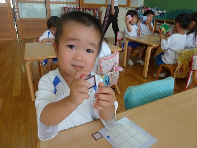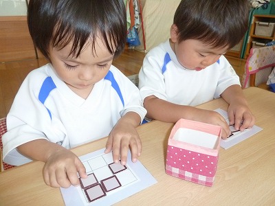 最年少クラスでは、タイルを使って形作りをしましたよ♪ 「家作ったよ~☆」「ロケットできた!!」など、楽しそうな声が聞こえてきました。 次はどんな形をつくろうかな? また今度、一緒にしようね!