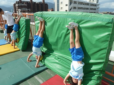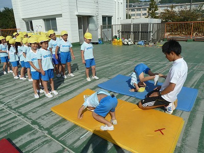 今日は、倒立に後転、跳び箱、ボールなどさまざまな種目に挑戦!!