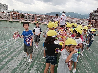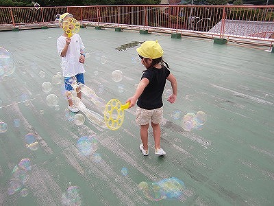 年長サマースクール2日目。曇りではあったものの、朝から涼しい気候でした。みんなでお散歩に行ったり、シャボン玉、ドッチボール、スイカ割りをしたりどれも大盛り上がりでした。また、夏の素敵な思い出が出来ましたね♪年長さんの笑顔がキラキラ眩しい、2日間でした。