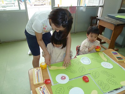子ども達が大好きな英語レッスンの時間!!最年少組も楽しそうにしています(^^) “Yes!” “No!” など自分の口ではっきりと言うことが出来るんですよ!! 特に動物や虫の絵が大好きで、とても盛り上がります☆ 終わった後は名前カードを先生のところへ持って行きます!お片付けも自分で出来てえらいね(^^)次の英語レッスンが待ち遠しい子ども達でした☆
