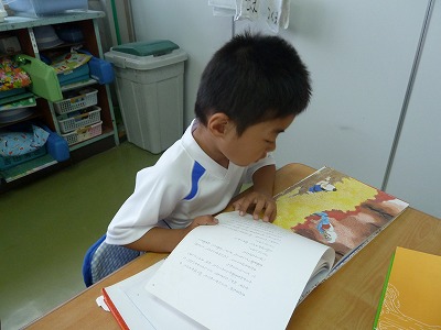 子ども達が大好きな絵本の時間♪ 絵本を選ぶ表情も、読む姿勢も真剣です! たくさんの良い絵本に触れ合ってもらいたいですね☆