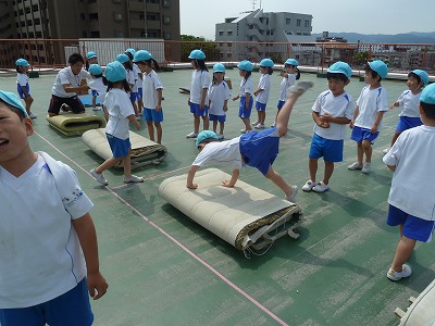 体を動かすこと大好きな子ども達♪ 跳び箱、側転、マット、ボールと猛練習中です☆ 出来ることが1つずつ増え、どんどん自信をつけてますよ!! これからの成長も楽しみですね♪♪