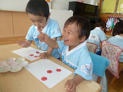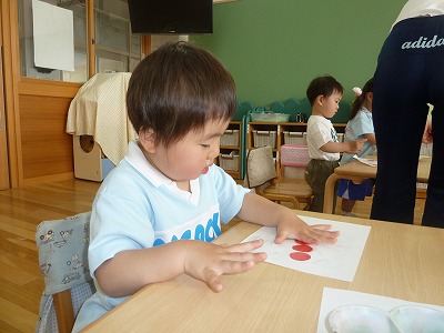 「お母さん指にちょっとだけ…」の約束をして、みんなでさくらんぼをつくりました。