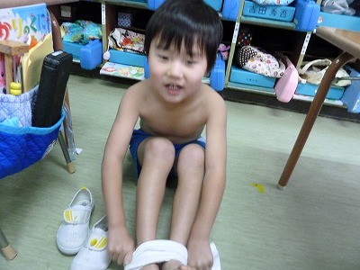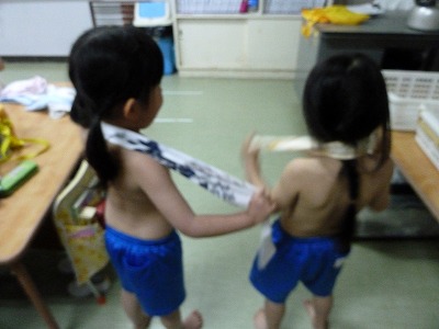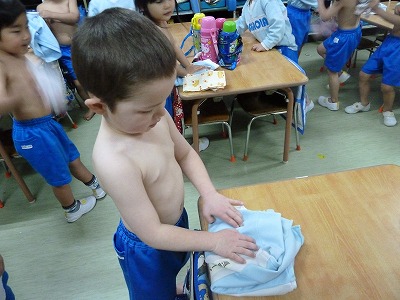 寒~い日が続きますが、園では強い体を作るために乾布摩擦をしています。
