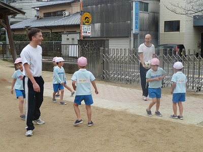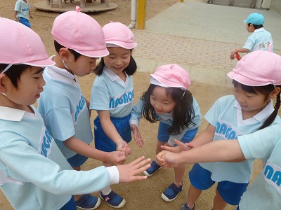 年長さんはお外遊びももうあと3回!!みんなで一緒におにごっこをしたり、ジャンケンゲームをしたり、楽しそうです♪残りの時間を楽しく過ごしてほしいですね☆