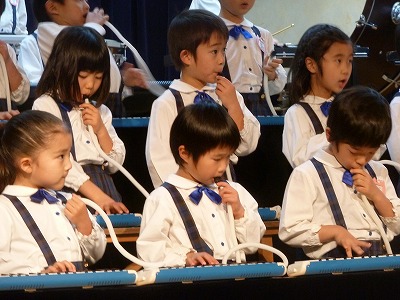 まちにまった音楽発表会。たくさんのお客さんや、スポットライトにちょっぴり緊張した子どもだち。それでもたくさんの拍手をもらって大喜びの子どもたちでした。合唱・合奏どちらもとっても上手にできました♪
