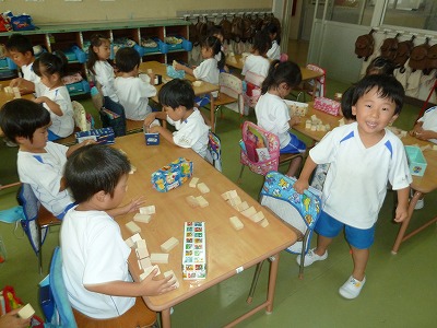 12日は中秋の名月。まんまるおつきさまでした。幼稚園では、14日にお月見団子を作りました。粘土遊びで丸めるのも上手になっていて
