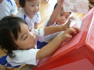 年少組は、はさみやのりをつかって栗を貼りました♪また、じぶんたちで「ありがとう」の文字を書きました!それぞれ、一生懸命書いているのが文字から伝わってきます。喜んでくれるとうれしいです。