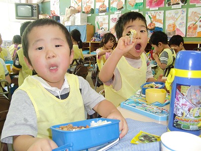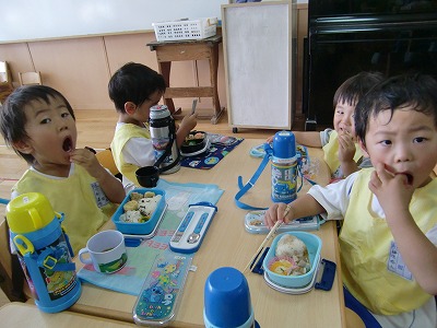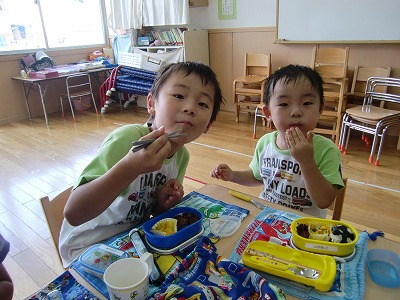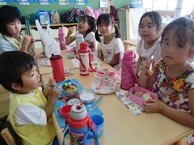 パクパク食べる子ども達♪夏休みということもあり、お預かり保育で