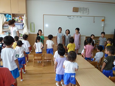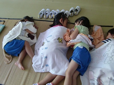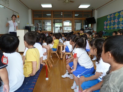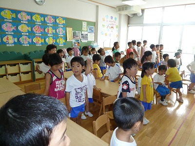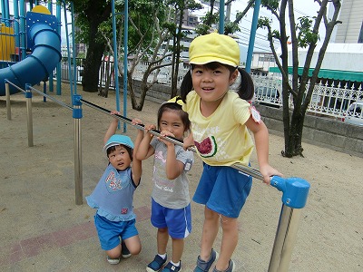 今日も外はあつ~い太陽に照らされていました。子ども達は、暑さに