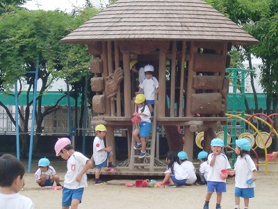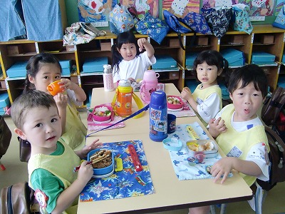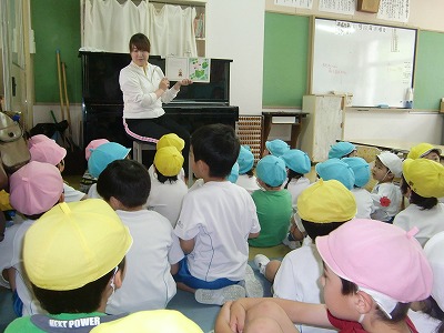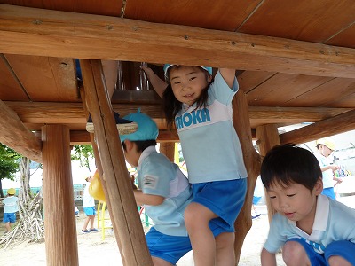 他学年と一緒に歌ったり、リトミックをしました♪お兄ちゃんお姉ちゃんクラスは小さいお友達の手をひいて、教えてあげたり、一緒にあそんであげたり。小さいお友達は、カッコイイお兄ちゃんお姉ちゃんに憧れて真似っこ☆また一緒に遊ぼうね♪