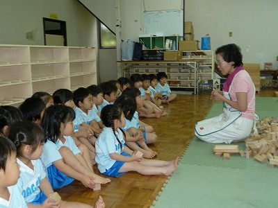 たくさんのつみきに子ども達は大喜び♪