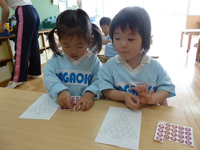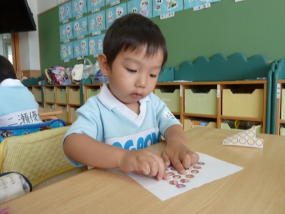 今日はみんなが大好きなシール遊びをしました。ぶどうのまる