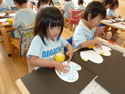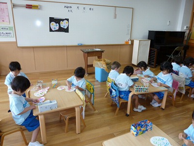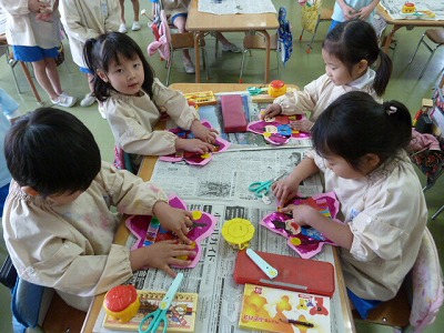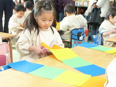 年中組では色画用紙などをはさみやのりを使って作っています。