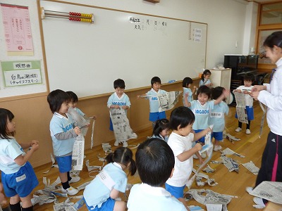 今日は雨が降っていたのでゆめ組みんなで新聞紙遊びをしました☆