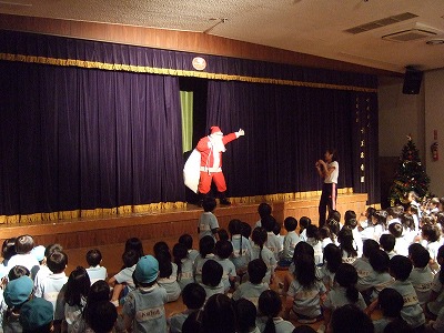 まちにまったクリスマス会♪なんと長丘幼稚園にサンタさんが