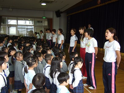 終業式では、話を聞く子どもたちの姿が