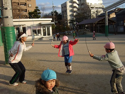鬼ごっこや砂遊び、とび縄など、体もポカポカに