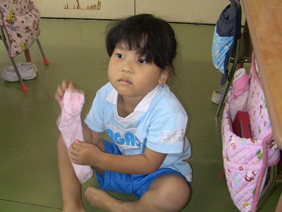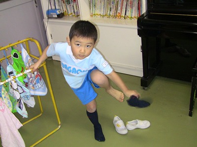 朝来たら、靴下も自分でぬいで裸足で過ごします。