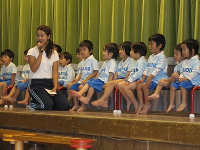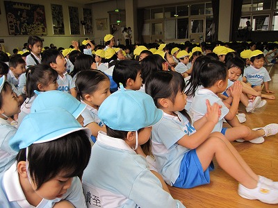 また、下で聞いている子どもたちも、お友達の発表をしっかり聞き最後には、「おめでとう!!」のプレゼントをあげることができました。