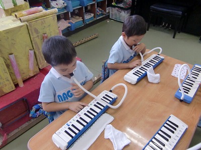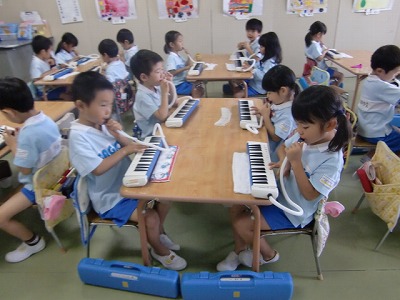 年中組では今メロディオンでミッキーマウスマーチの練習をしています。