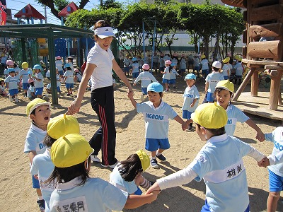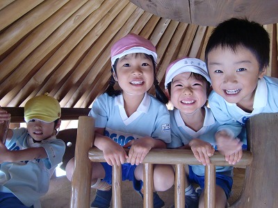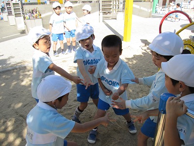 「はっきよい!」最近外あそびでの時間にも学年関係なくおすもうをする子ども達の姿がよく見られます。あと少しでコスモスまつり♪きっとおまつりが楽しみなんだろうなと、笑みがこぼれてきます。その他には、広い園庭を思いっきり走ったり、友達と鬼ごっこをしたり、先生と一緒に遊んだりと、
