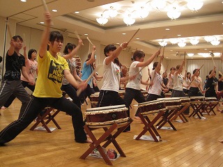 マーチング・日本太鼓・マーチングライセンスの3つのコースに分かれて講習を行い、最終日には発表会をしました。仲間とたくさんリズムを組み合わせて、一つの型をつくる!!ことを肌で感じました!!