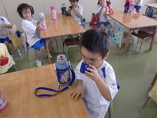 たくさん体を動かした後は、しっかり水分補給。