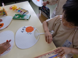 七夕まつりに向けてうちわ作りをしています。
