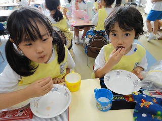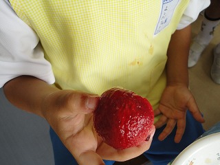 給食のときに一緒に食べました。「おいし~」という子や、「すっぱかったぁ~」などいろんな声が聞こえてきました。