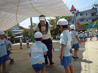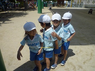 昨日は、とても良い天気で子どもたちもたくさん汗をかきながら、遊んでいました♪特に年長では、縄跳びが流行っていますよ!最近は、ながなわも使い始めて、みんな興味津々です☆