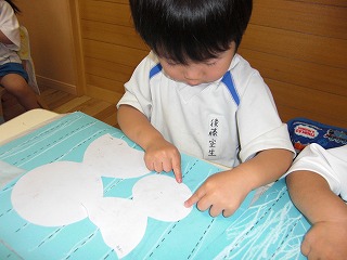 最年少さんは、そんな時期にぴったりのてるてるぼうずを作りました。